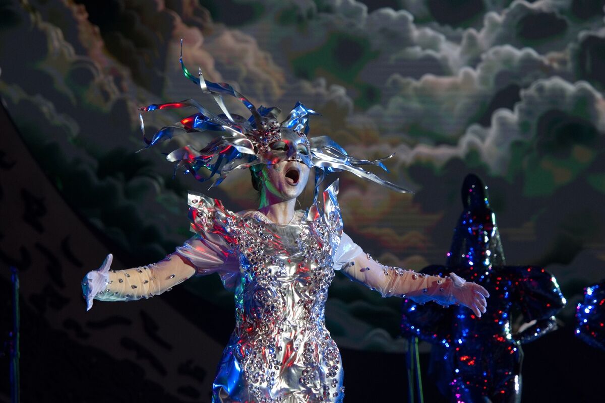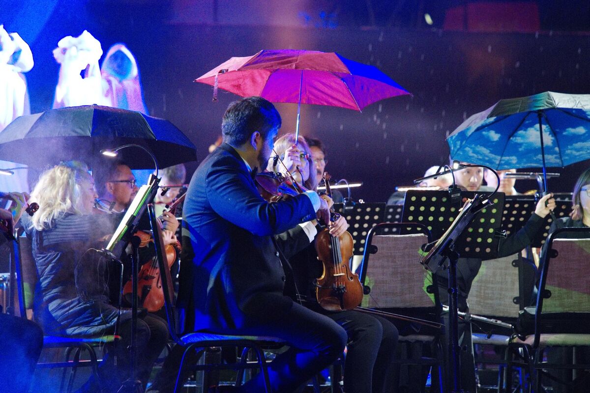 Возле Дворца Республики была выстроена сцена с огромными экранами. Для концерта было сшито больше 100 костюмов. Особенно повезло солистам — они получили невероятно красочные образы. Например, Анжела ШАГАРОВА, исполняя арию Плавалагуны из фильма "Пятый элемент", была в маске, а танцоры появились в футуристичных блестящих скафандрах. Были и другие легендарные мелодии из фильмов и мюзиклов, все роскошно аранжировано для академического оркестра, учтены нюансы концерта на открытом воздухе.